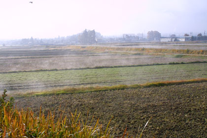 地面から・・・、煙るように・・、安曇野は・・・、朝もやに・・、包まれます。